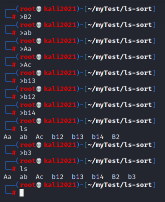 ls>>a将ls打印的信息追加到a文件中在参考博客中,我们使用了同样的方式生成文件名,但是最终的排序效果并不一样