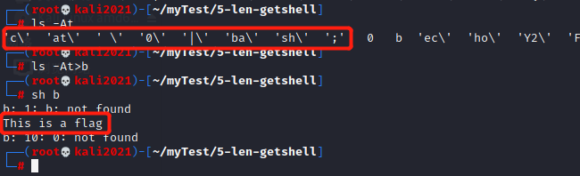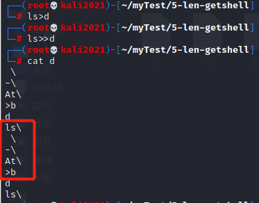 惯例先说明四长度和五长度的区别,主要在于ls>>d,追加d文件内容这个命令用不了了,因此构造不出ls -At>b这条命令